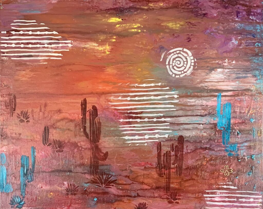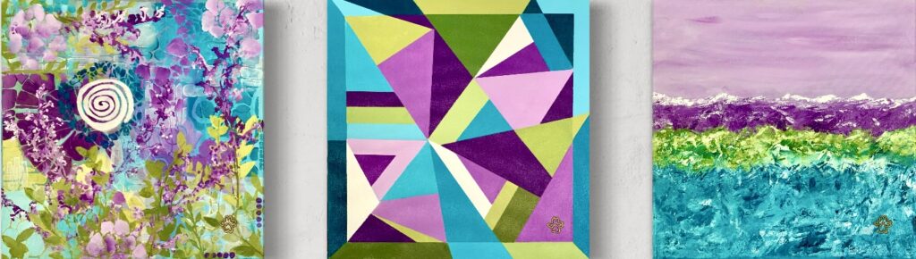 This painting, “Sacred Geometry of Us,” can be purchased and displayed beautifully on its own. It is, however, part of a triptych that represents 3 different spiritual journeys that were created with the exact same color palette. Each one of the triptych carries a romantic energy while expressing different visual languages (landscape, geometric and organic.). […]